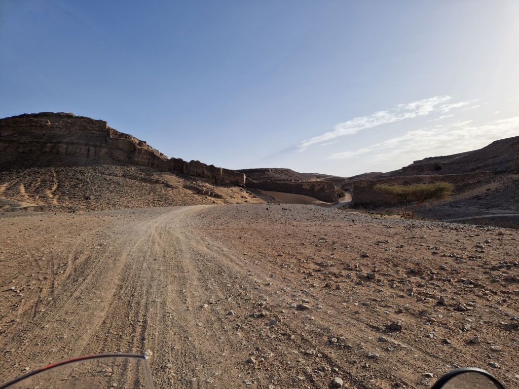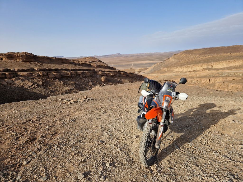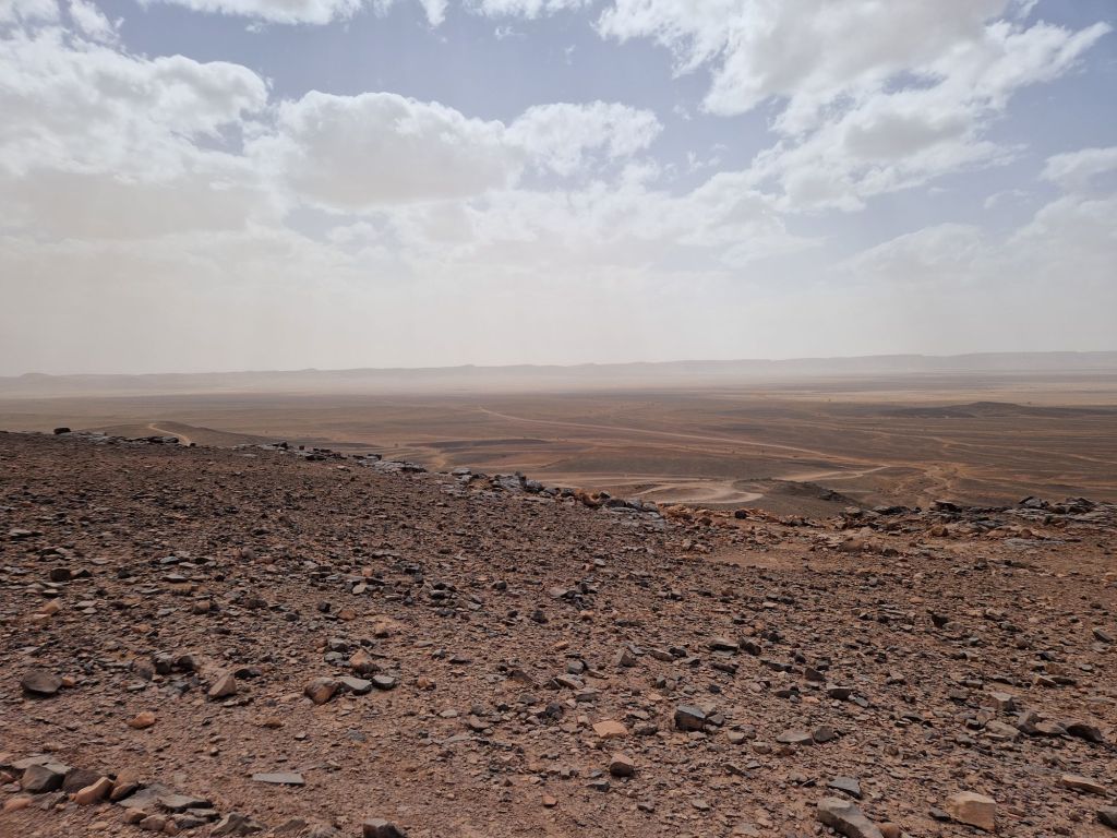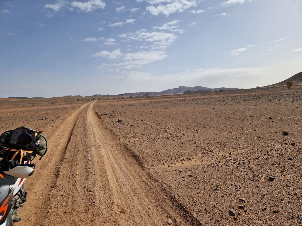 Rissani-Tagounite, ese era el objetivo de hoy. Apenas 250 kilómetros, pero me han parecido 500. La velocidad media ha sido de 35km/h, y con las paradas para descansar y beber han sido 9 horas de moto