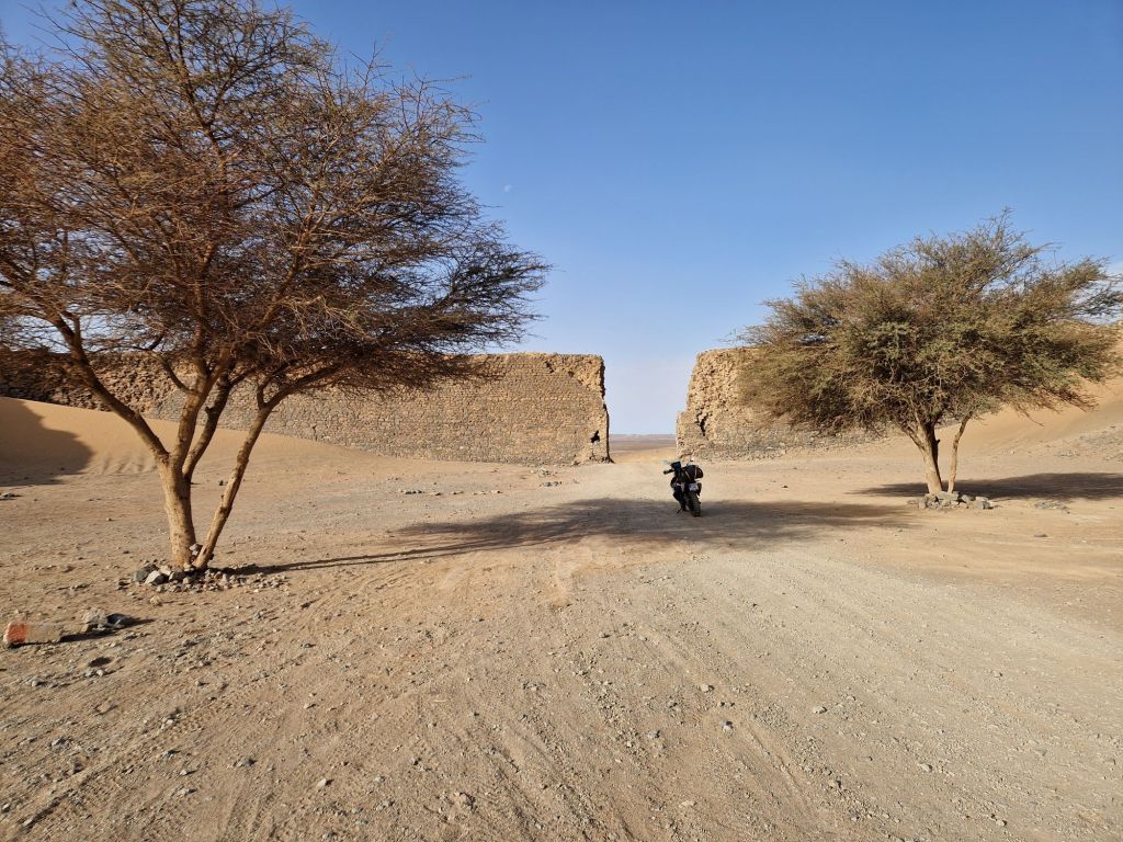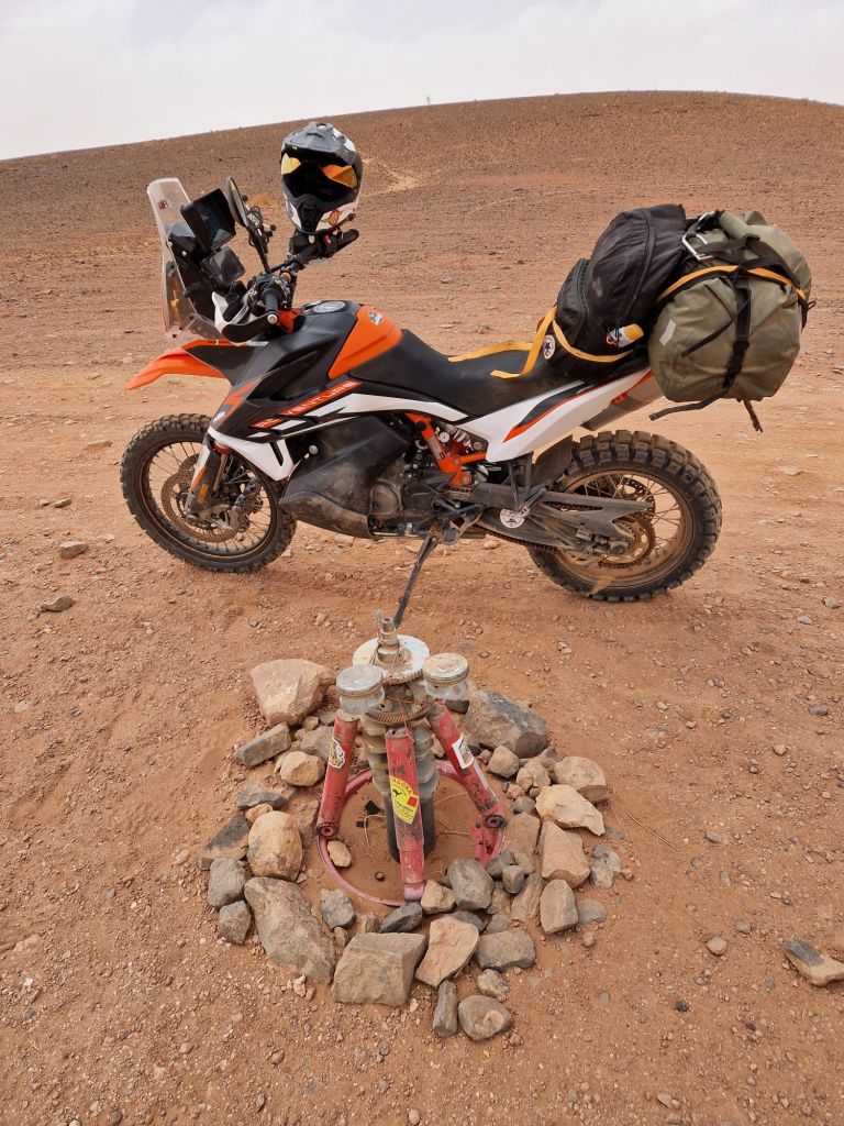 Lo primero, comprar un par de botellas de agua porque hoy había entre pocas y ninguna parada intermedia y el desierto da sed. ¡Vaya obviedad! También reposté la moto hasta que se salió la gasolina, que la etapa de hoy es difícil