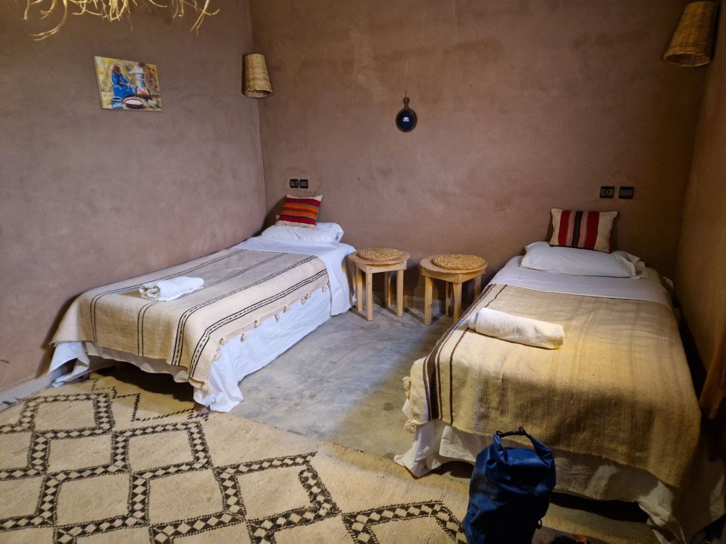 Y finalmente llegué al albergue, una antigua casa de adobe restaurada y regentada por dos hermanos, Abdul y Ahmed, y  que me han caído muy bien; hasta nos hemos tomado un té juntos