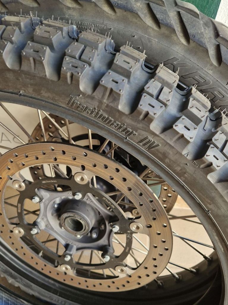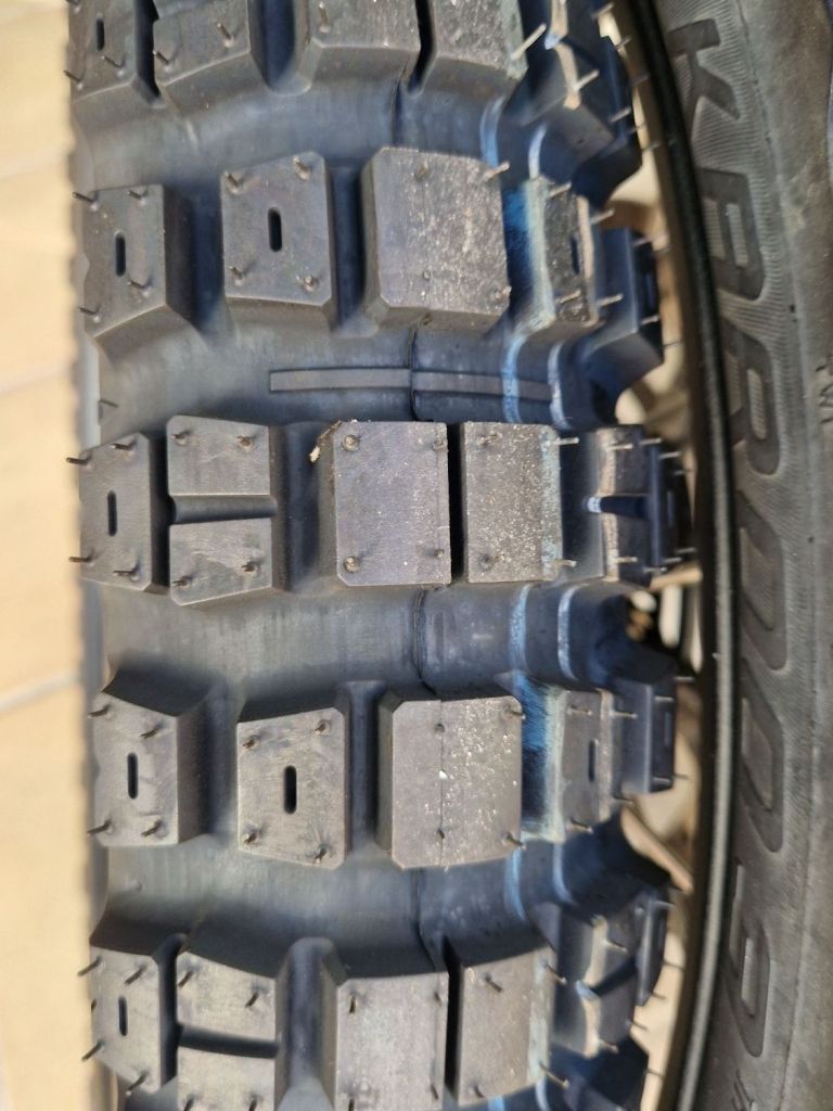 De serie llegó con un Karoo 3, el que ahora le quito porque está en la lona, y con el que he hecho unos 10.000 kilómetros. Con esta goma es con la que me fui a Marruecos en las Navidades pasadas, porque no iba a haber arena sino Atlas.